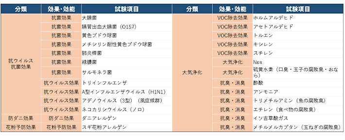 また、一般的な光触媒は太陽光(紫外線)によって効果を発揮するために一定の光が必要であり、暗所では効果が十分に発揮されませんが、サガンコートは、可視光線(蛍光灯の光)で十分効果を発揮し、また暗所でも効果を発揮することが大きな特徴です。