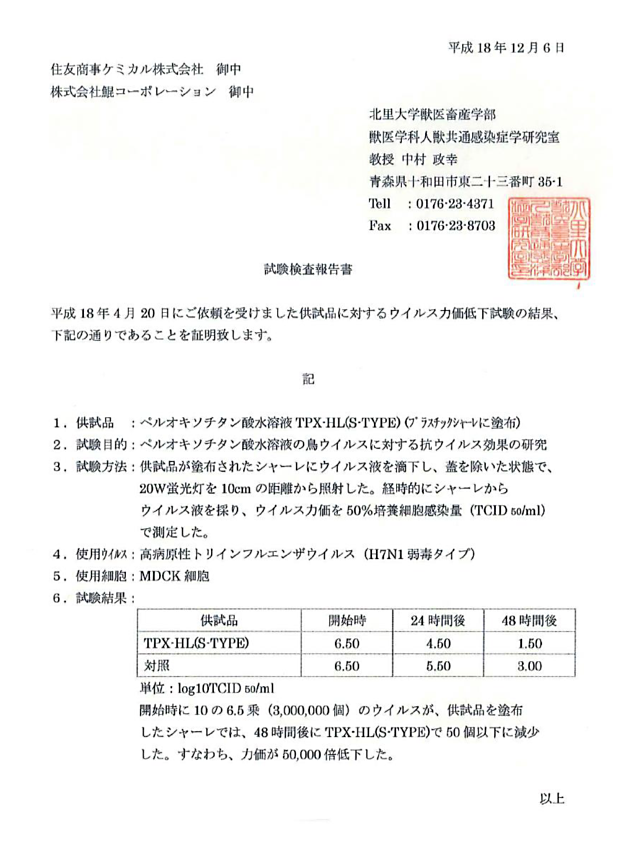 その安全性は、日本食品分析センターにて試験を行い、人体に影響がないことを実証済みです。