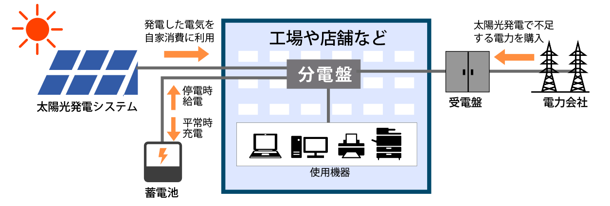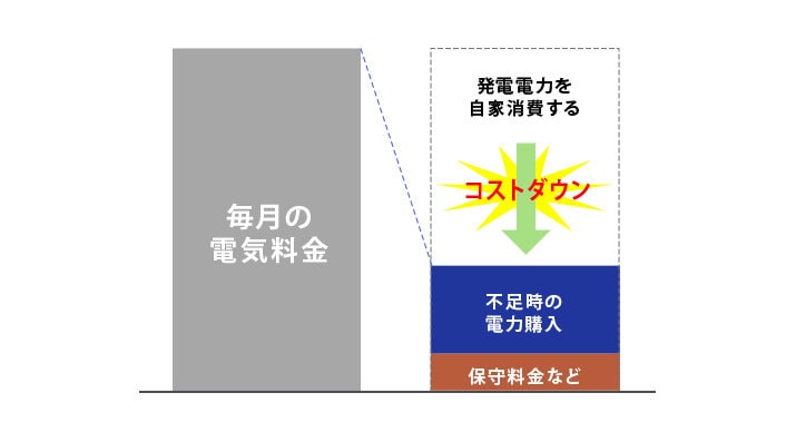 発電で得た電気を自家設備で有効に使うことで、電力会社から購入する電力コストを大幅に削減することが可能です。